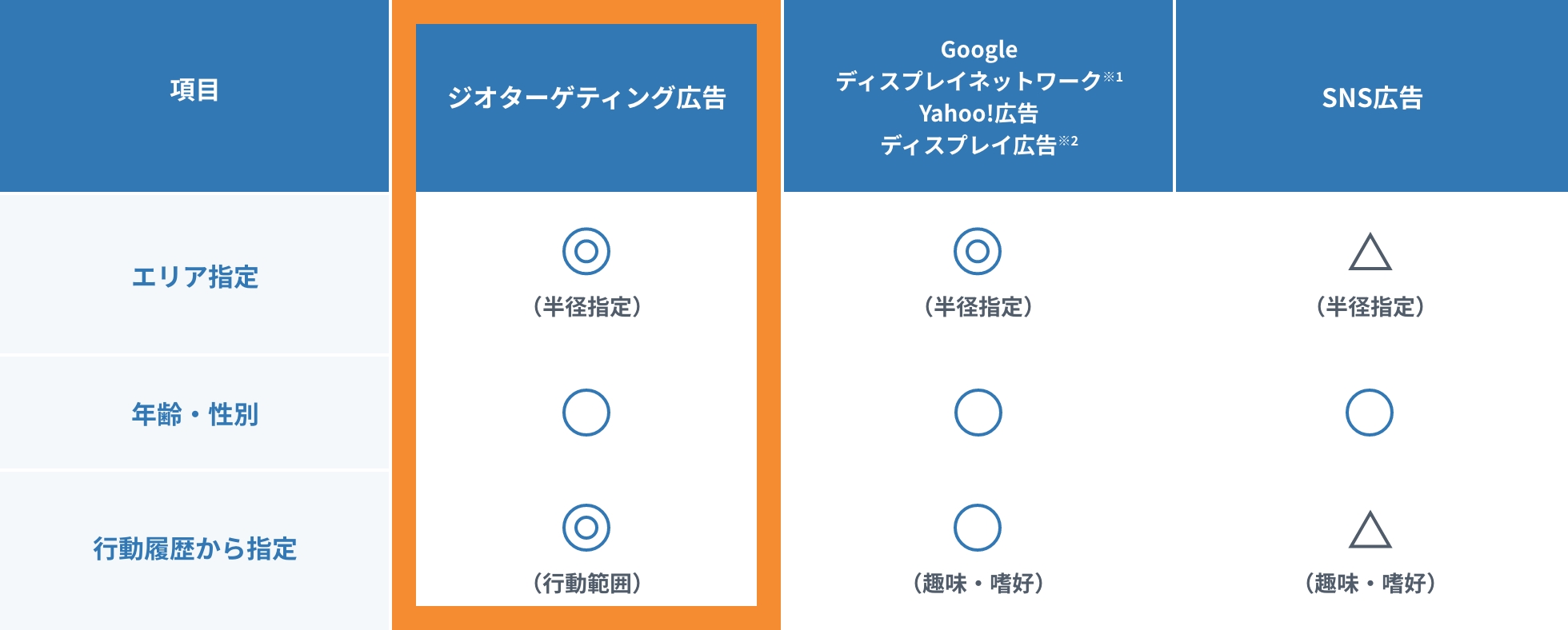 他社のジオターゲティング広告のサービスと何が違いますか?
