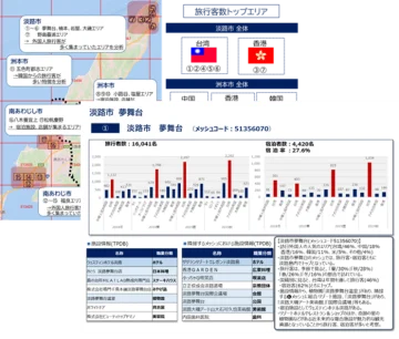地域内を細かく細分化し、エリア毎、観光スポット毎の人流データを把握。人流の多少やWebアンケートによるGAP調査などにより、観光資源の発掘・開発・磨き上げの基礎データとなります。